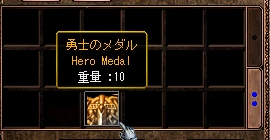 ちゃ(´ ー `)ノ行ってきた!!!!!!そしてとった!!!!!勇士のメダルぅぅぅぅぅ猫ギルドのみんなでとってくれた^^でもそこまでには船に乗り遅れたり船で死んだりヒドラのおなかに入ったけどメダル取り忘れたりたくーさん迷惑かけた@@朝まで火炎登録等手伝ってくれた猫ギルドのみんなありがとう@@でね、がんばってるみんなみて思った@@みんなつお~~~~~いおいらもそうなりたい@@既成だけじゃなくて役に立ちたい@@100歳なりたい症候群なのだ@@でも明日には実家に帰るから今日中に100歳に・・・無理(´ ー `)合成失敗続きだし今はLVあげることに専念しお@@