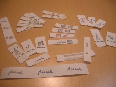 C&Sさんで見かけたイニシャルネームのタグ。C&Sさんのは可愛いけど、予約して買い物をし、届くまで時間が掛かるのが...買ったものを忘れがちな私にはちょっと、ね。そこで自分でハンコで作ることに~。まねっこ、まねっこ♪こんな感じでホリホリ...スタンプ用のテープに捺し、カット。 さっそくタグとして使ってみました。まずまずの出来ばえです。私的には満足♪ 1.5cm幅を使ってみました。