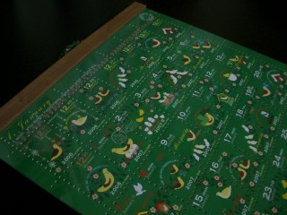 ☆さくらんぼchanさんのブログで見て一目惚れしちゃったカレンダー。昨日ポチッとしたのに今朝には届きました。なんてすばやいお店なんでしょ。ちなみに購入したのはITO-YA e-STOREというお店です。 それぞれの月ごとに違うのはもちろん、毎日違う柄で切手シートみたいになってます。使い終わったら切り離して楽しみたいと思います♪ ・-・-・-・-・-・-・-・-・-・今日は久しぶりにハンコを彫るべく下書きしたものを消しゴムにトレース。そこで力尽きてしまいました...来週はホリホリ週間にしたいかも。 今週ははんど&はあとのツリー作りをやってました。今月から始めたのですが、次のが届く前にできてよかった~。これからは出かける機会も少なくなくなるだろうと思って始めたんですが、なかなかいいかも♪