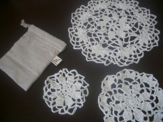 編み物がしたくなり、以前フェリシモで頼んでそのままほおっておいたレース編みに挑戦してみました。初めは何がなんだか分からなくて、編んでは解いてを繰り返し...なんとか形になりました~。一番初心者用のなのに、時間が掛かって大変でした。編み図が読めるようになっただけでも、すごい進歩です。アイロンを掛けていないので、まだボロボロです... 楽しかったので昨日は編み物の本を買ってきました。他にもなにか作れるようになるといいな。 この2冊も先ほど買っちゃいました。