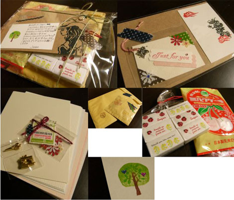 お友達のJunanさんから、思いがけないプレゼントをいただいてしまいました。作品作りのアドバイスのお礼にって事だったんですが...大したことは何もしてないのに、こんなに沢山! 作品はもちろん、オマケに可愛いチャームやお砂糖、お菓子まで。色々使えそうなペーパーのセットも。Junanさん。盛り沢山、どうもありがとう!!Junanさんの消しはんブログはこちら♪→☆☆☆ のんびりモードに切り替えて、引き続きランキングに参加中↓ 気が向いたら ポチッと、応援よろしくお願いします♪・.***MIKERIN作品集***.・◇消しゴムはんこのお部屋 ◇Mikerinchi-素材の部屋