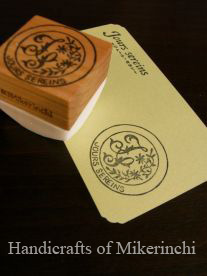 スタカニ前からお友達に頼まれていたはんこ。デザインを確認したその日の内に出来あがったと連絡したら驚かれました。仕事が早い!って...たまたまやる気になっただけですw 丸いはんこだけの予定だったけど、店名の印刷が自分では出来ないと言っていたので何にでも使えるようにお店の名前のはんこも一緒に。 私のパソコンでもこのフォントは出てこなかったので、頂いた名刺をそのまんまトレースしました。小さいカタカナなんて1ミリあるかないか...久しぶりに頑張った!↑ の下が頂いた名刺、緑の紙のがはんこ。良い感じでしょ?? 恥ずかしい印面。彫り時間 - 丸はんこ 43分。文字はんこ 31分。丸は直径がほぼ3センチ。 お友達、アロマのお店?教室?を始められるそう。店名の意味、何度聞いても忘れてしまう...詳しいことが決まったらまたお知らせさせてもらいますね。沢山使ってくれますように。 いろいろ思う所があってランキングバナー復活中。↓ 応援してくださいませw 今度、幼稚園のクラブではんこ教室をやります。暫くの間はんこから離れようと思っていたけど、見本とか彫らなかきゃだしうーん。無理?? ・.***MIKERIN作品集***.・◇消しゴムはんこのお部屋 ◇Mikerinchi-素材の部屋 アダルティーコメント頻発のためコメント制限しております。コメント・BBSにURLを残してくださる方はURLの「http://」は入りませんので、「http://」以降のアドレスをお願いします。