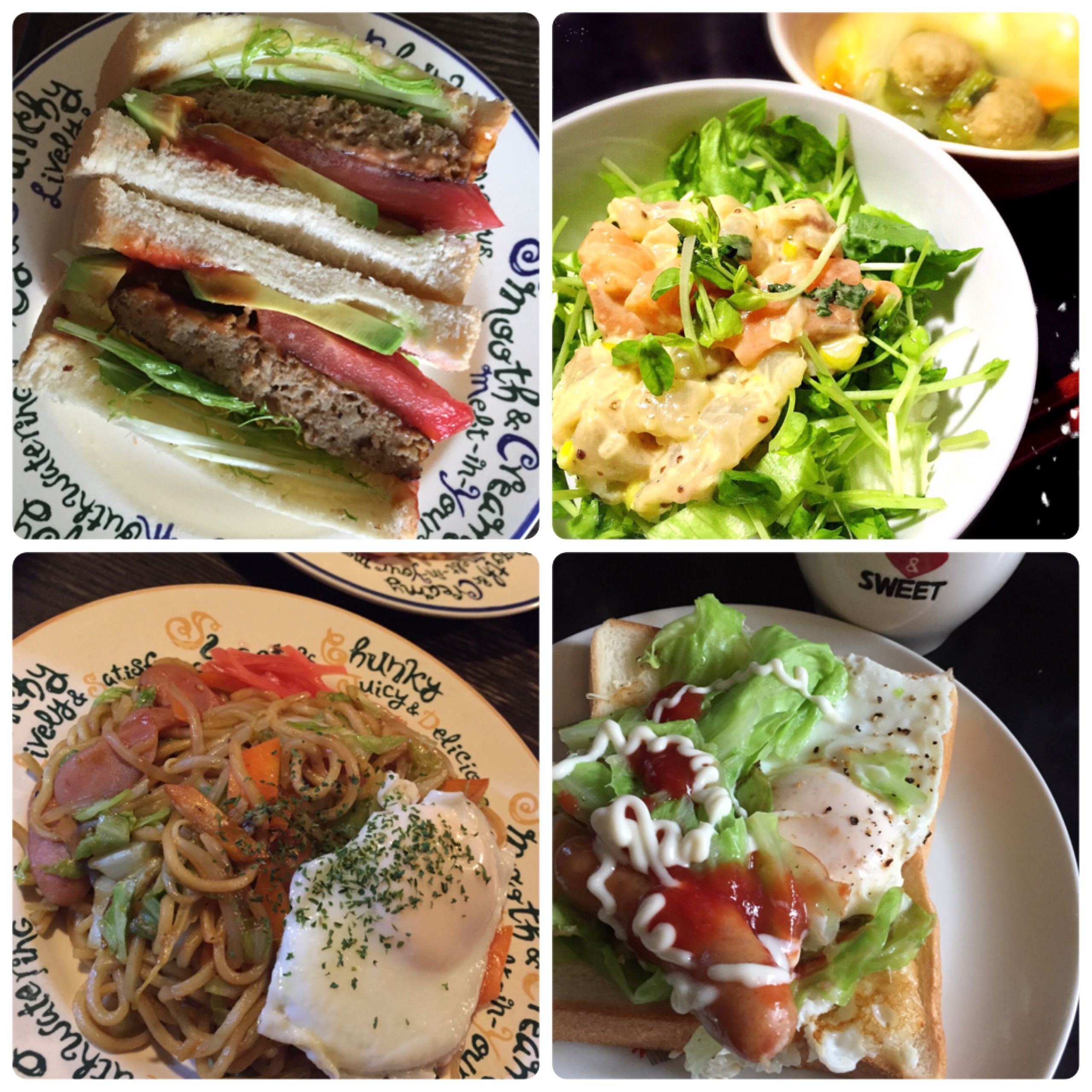 いつかのランチ写真まとめてみました。左上、アボカドとハンバーグサンド 子どもたち昔はアボカド好きではなかったけれど、久しぶりに作ったら気に入ったみたいです。左下 焼きそば、目玉焼きのせ。長男友人がきたので、簡単ランチ。冷蔵庫に残っていた焼きそばを。右上 旦那さん作、洋風刺身丼、夕飯に残ったお刺身を海老マヨのような、クリームのような味付けで。マスタードがきいてて美味しかった。なんかとってもおしゃれだよ|ω・)チラ右下 お休みの日の朝ごぱん?お昼ごぱん?トーストのうえにキャベツやら目玉焼きなどたっぷりのせて。マヨとケチャップ多すぎですね(^^)こうやってみると、やっぱり炭水化物たっぷりランチですね。子どもたちはこれだけでは足りないので、ごはんにふりかけとか。海苔とか、納豆とか、カップラーメンとか食べます(-。-;今日、関東地方は11月に降るには54年ぶりの初雪でした。それほど寒くなかったのに急に昨日から雪が降りそうな凍えるような寒さになりました。公園も真っ白に。私はレインブーツを履いて買い物に。歩くとすぐ溶けてしまう雪なので長靴がやっぱりいいですね。ハンターのレインブーツ ショート を履いてます。履くだけで気分があがるデザインです。HUNTER 用の ソックス がずっと気になっています。暖かいし、可愛い。サイドゴアタイプのHUNTERいつの間にか出ていましたね。履きやすくて合わせやすいデザインでいいな。雨になって雪も溶けてきたけど、明日も長靴かな。安くて可愛い寒いので、今日はシチューにしようと思います♪暖かくして過ごしたいですね。instagramやってます。n_mikikaこちらでは、毎日主人と子どもたちのお弁当をupしています。楽天roomやってます。mikika購入したもの。お気に入りをあつめています。