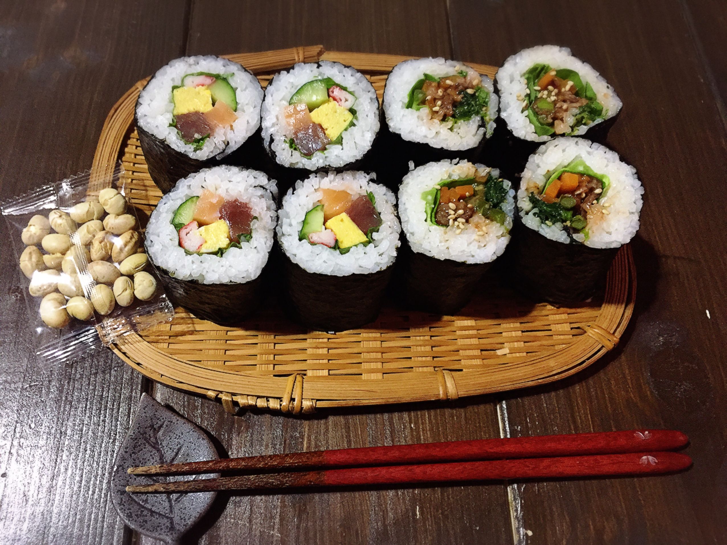 昨日は節分恵方巻き作りました。マグロ、サーモン巻き、プルコギ巻きとてもいい感じに撮れてますが。。。恵方巻き、13本作りました。ご飯は全部で9合。10合炊いた残りがご飯茶碗一杯もなかったのでそれ以上だった?!かも太巻きたくさん並んでます。笑。結婚記念日なので、ハート巻きもハート♡可愛い。とテンションあがる⤴︎わたしでしたが子どもたちは、ふ〜ん。だけ(-。-;それにしてもお腹いっぱい。食べ盛りの恵方巻きは作り甲斐はあるけれど、作るだけでお腹いっぱいでした。ハートって気分があがりますね。ハートの小銭入れハートバイカラーの小物いれもハートの、シュガー特別なときにじゃないともったいないなぁシサスアイビーをハート型に造花なのでいいですね。 instagramやってます。n_mikikaこちらでは、毎日主人と子どもたちのお弁当をupしています。楽天roomやってます。mikika購入したもの。お気に入りをあつめています。クリックお願いします*ˊᵕˋ)੭⤵︎料理ブログランキングに参加しています。⤵︎クリックお願いします