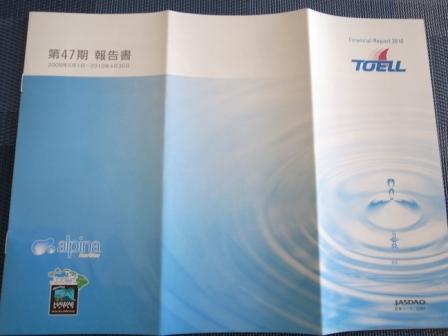さてポートフォリオ概況シリーズですが、昨日お伝えしたとおり本日より中位の93位から再開します。今後はPF上位の「緊急シリーズ」と中位以下の「通常シリーズ」を並行してお送りする予定です。今日の銘柄はいきなりですが準主力候補として見ています。 93位 3361 トーエル (JQ 4・10月優待) ◎◎ PF時価総額93位は、神奈川地盤の燃料商社で飲料水事業も手がけるトーエルです。 現在の株価は300円、PBR0.62、株主持分比率46.7%、予想PER8.31、配当利回り3.3%(10円)、総合利回り5.3%(10+6=16円)で、優待は1000株保有で年2回、4・10月株主に3000円相当の自社取り扱い商品(ピュアウォーター)です。 トーエルは、東日本大震災後に「東京の水道水から放射線!」 というショッキングなニュースがあった時に、 「水パニック」発生と同時に株価が急騰し私はそのとき手放したままの状態でした。しかしその後株価は落ち着き、また9月12日にまずまずの1Qと同時に、従来の年1回から年2回への 優待改善 を発表したのを機に再参戦しました。 トーエルは福島原発の放射能漏れ事故による衝撃の水道水汚染以来、「安全・安心」な水への需要が高まったことから、手掛けるボトルウォーターへの特需が発生しウォーター事業の収益性が急拡大しています。(1Qのウォーター事業の売上高は14.35億円で対前年同期比+47.8%、営業利益は2.9億円で+72.3%) 今回の優待改善は、トーエル自身が今後の業績推移に明るさと自信を持っていることの現れであると優待族的には考えています。優待改悪・廃止する銘柄は平均的にその後の株価推移は軟調ですし、逆に優待改善する銘柄は堅調なことが多いんですね。 東日本大震災後には様々な銘柄が「震災特需関連」として持て囃されましたが、実際に特需によって利益が上がっている銘柄と言うのは驚くほど少ないのが現状です。そんな中トーエルには間違いなく特需による利益が発生していますし、福島原発事故によって今後地下水汚染が進んでくるであろうことも考え合わせると、「安全な水」への需要と言うのは、特需ではなく永続的なものとなっていると見ることも出来ると思います。私はそういった観点から更なる買い増しも視野に入れて、今後のトーエルの業績推移を慎重に見て行きたいと考えています。