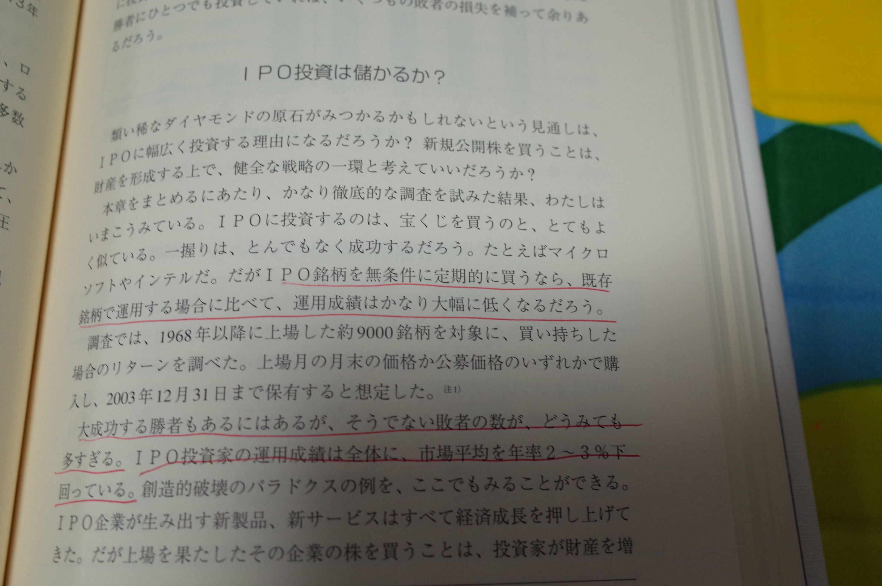 「IPO投資家の運用成績は全体に、市場平均を年率2~3%下回る。」と述べています。