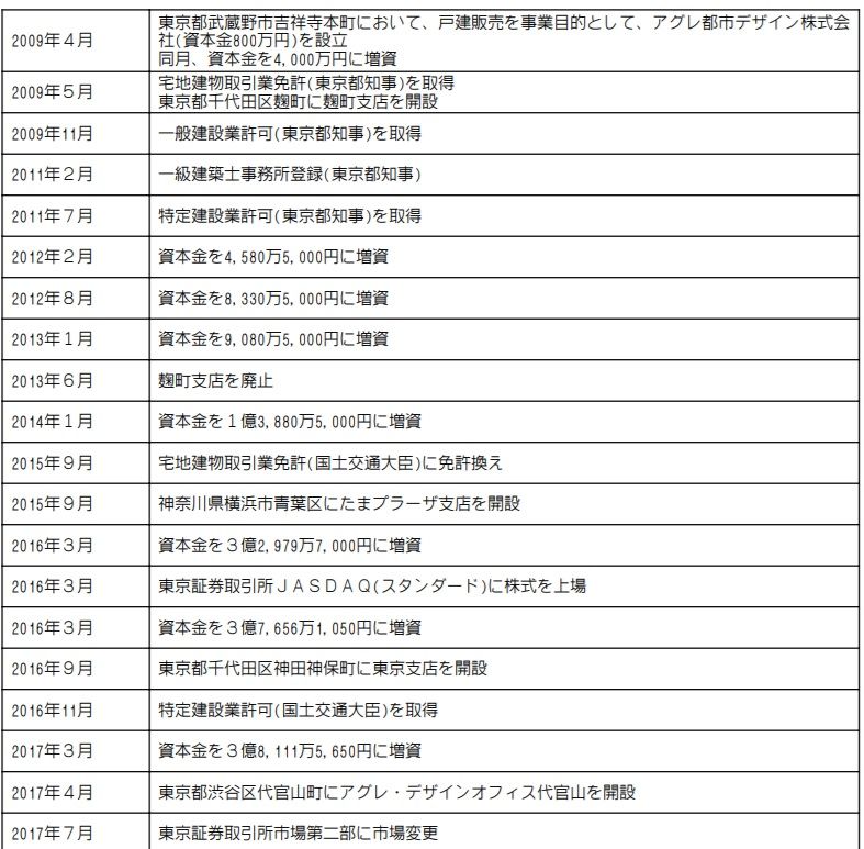 アグレ都市デザインは創業者である大林竜一社長が新日本建物時代の数人の仲間と2009年4月に設立した若い会社ですが、一気に成長し2016年3月には東証ジャスダックへ上場、その後東証2部を経て2018年7月にはついに待望の東証1部昇格を果たしました。
