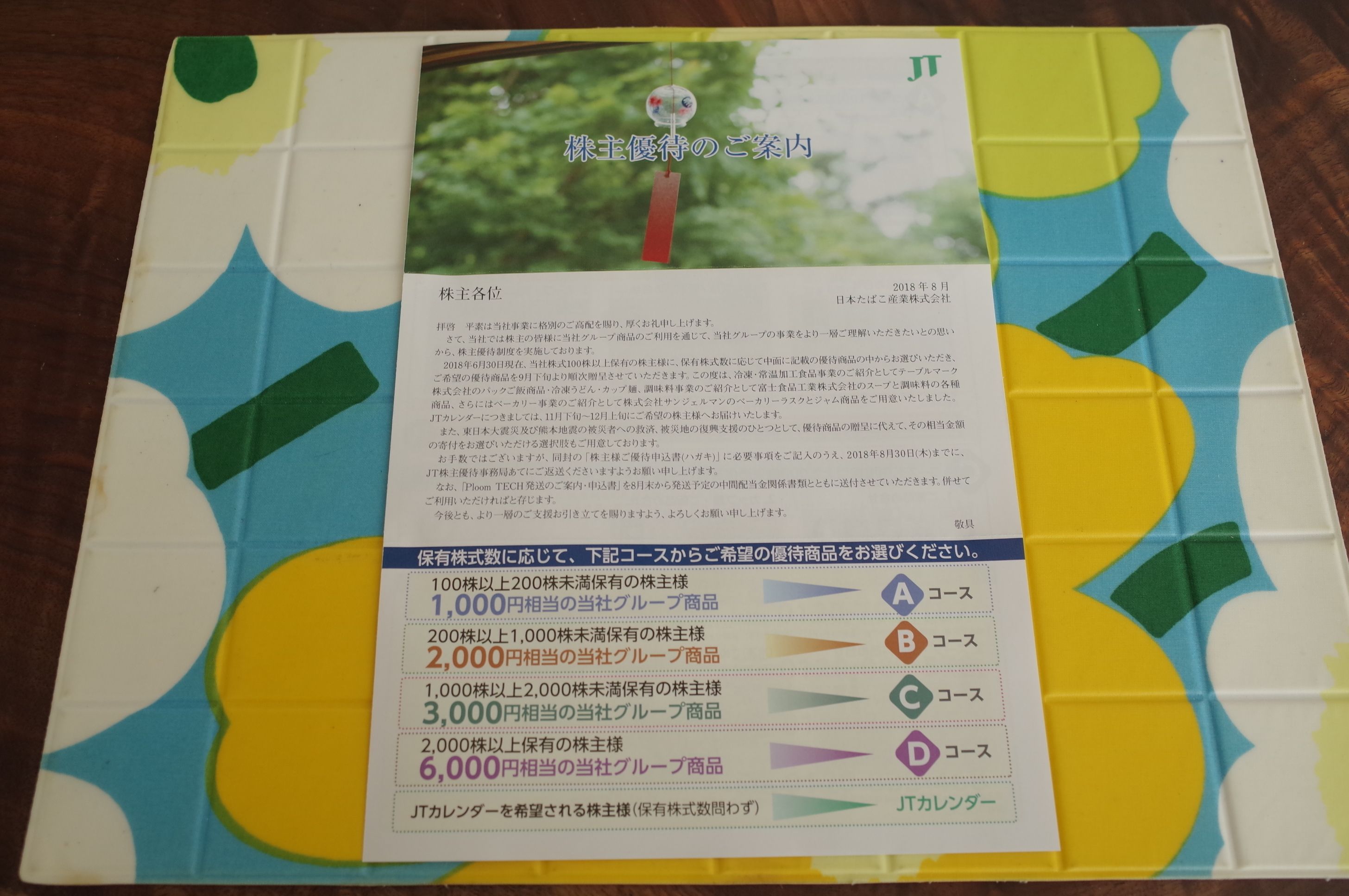 現在の株価は2879円、時価総額57580億円、PBR1.92、自己資本比率は53.7%、今期予想PER13.94、配当利回り5.2%(150円)、総合利回り5.9%(150+20=170円)で、優待は100株保有で年2回1000円相当の自社及び自社グループ会社商品などです。尚、JTの株主優待制度は ​ 2020年度から変更(継続保有1年以上が条件に追加。優待金額としてはやや改善) ​ となります。
