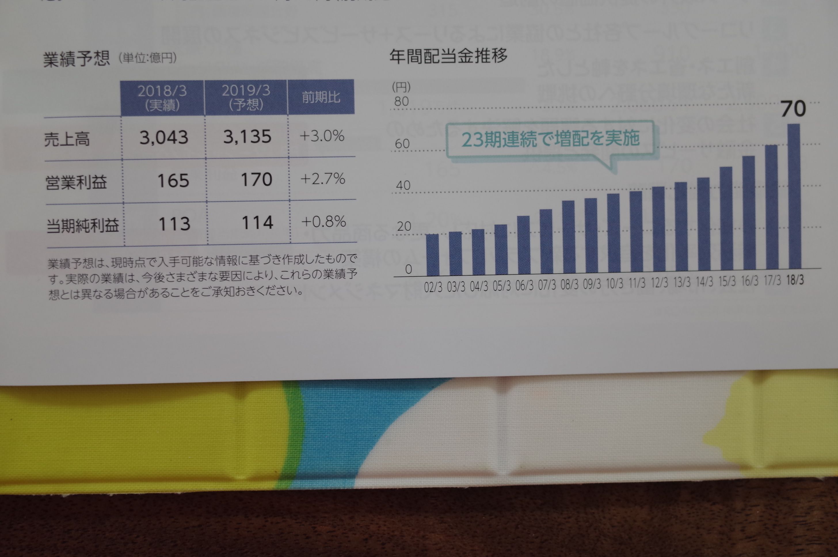 現在の株価は3415円、時価総額1066億円、PBR0.61、自己資本比率16.8%、今期予想PER、配当利回り2.6%(90円)、総合利回り3.5%(90+30=120円)で、優待は100株保有で3000円相当のクオカードです。また長期株主優遇制度もあり、1年以上の継続保有で4000円相当、3年以上で5000円相当となります。