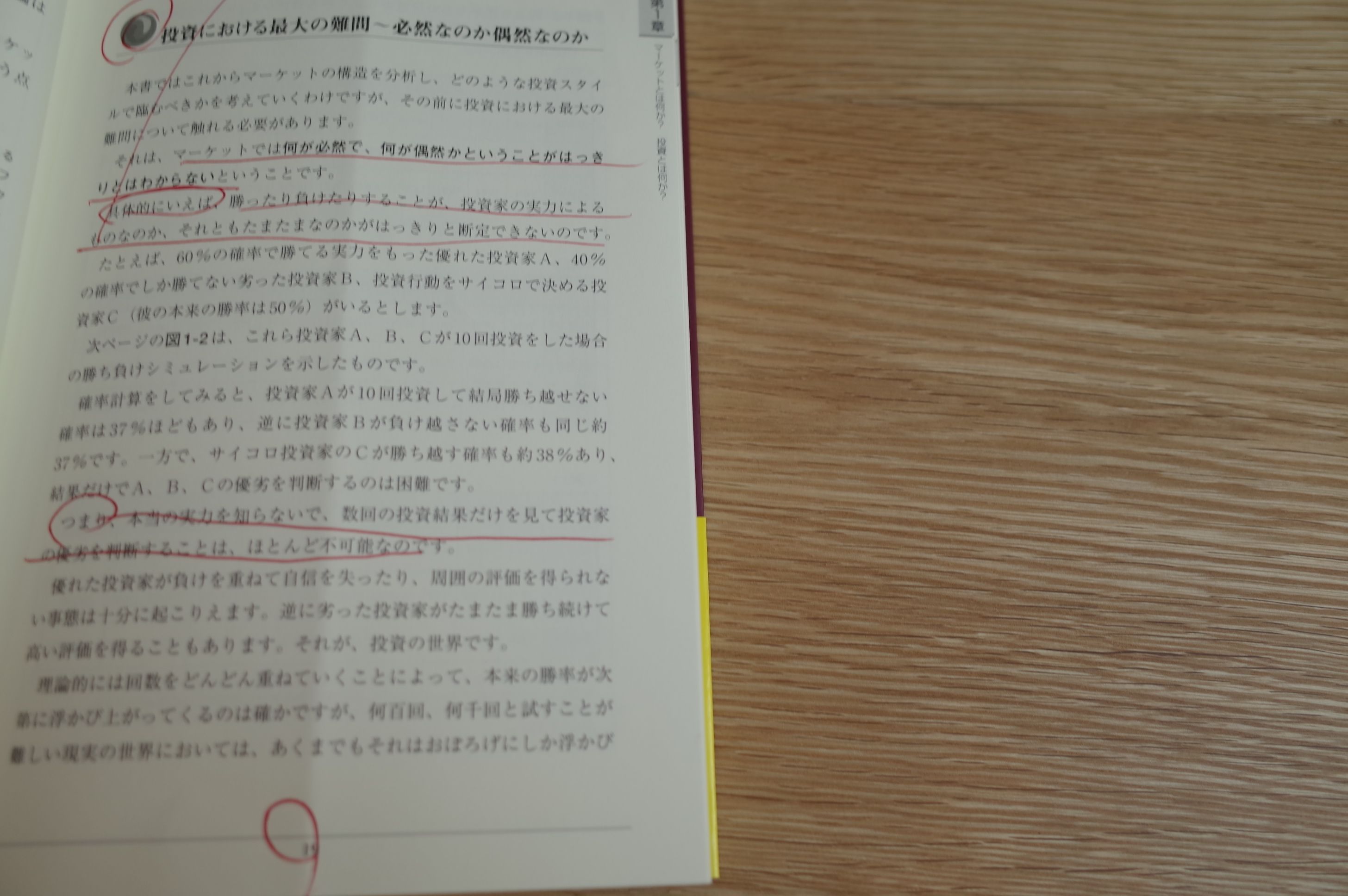 具体的に言えば、勝ったり負けたりすることが、投資家の実力によるものなのか、それともたまたまなのかがはっきりと断定できない。