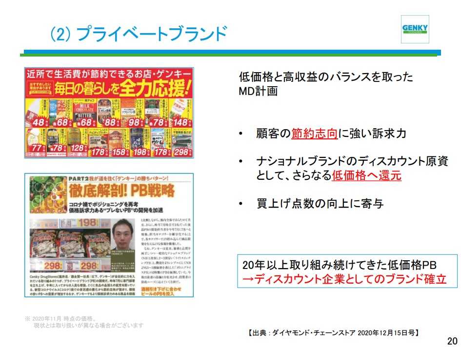 次のポイントは、「なんでも激安で売っている、ドラッグストアのマントをまとった食品スーパー」のゲンキーに取っての 生命線=利益率の高いプライベートブランド(PB)商品を買わせる仕掛けのえげつなさ