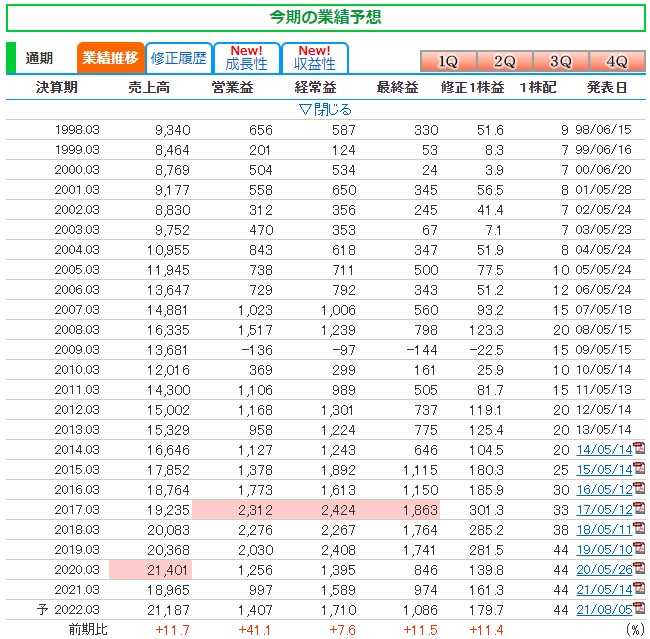 ここは2014シーズン14位、2015シーズン36位、2016シーズン27位、2017シーズン19位、2018シーズン26位、2019シーズン43位、2020シーズン43位と長年ポートフォリオ上位を保ち続けている実力派の銘柄ですが、今シーズンもPF上位の一角の地位を維持してここで登場してきました。