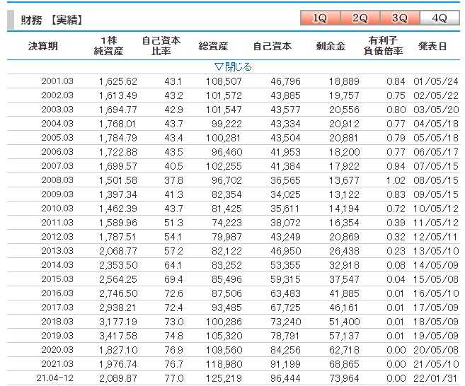 そして改めてイエローハットを見てみると、指標的にはもちろん安いし、過去25年間全く成長していない業界1位でライバルの ​ 9832オートバックスセブン ​ と違ってジリジリと着実に成長しているし、今期で13期連続増配予定で株主還元にも積極的だし、いつの間にか財務鉄壁の無借金企業になっているし、直感通りの無茶苦茶良い企業でした。
