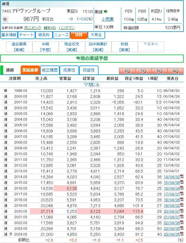 63位 7463 アドヴァングループ (東S、3月優待) ◎~◎◎