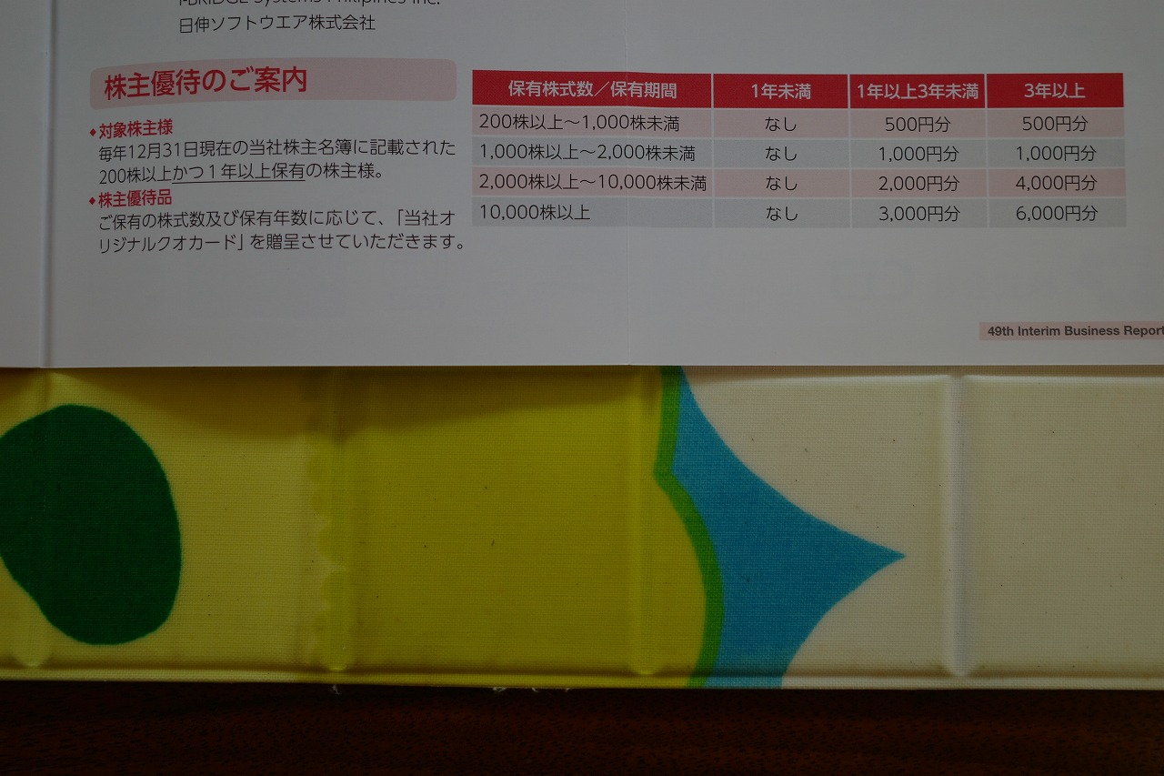 現在の株価は461円、時価総額308億円、PBR1.83、自己資本比率は79.1%と良好、今期予想PER20.49、配当利回り3.0%(14円)、総合利回り3.6%(14+2.5=16.5円)で、優待は1年以上の保有を条件として、200株保有で500円相当のクオカードなどです。