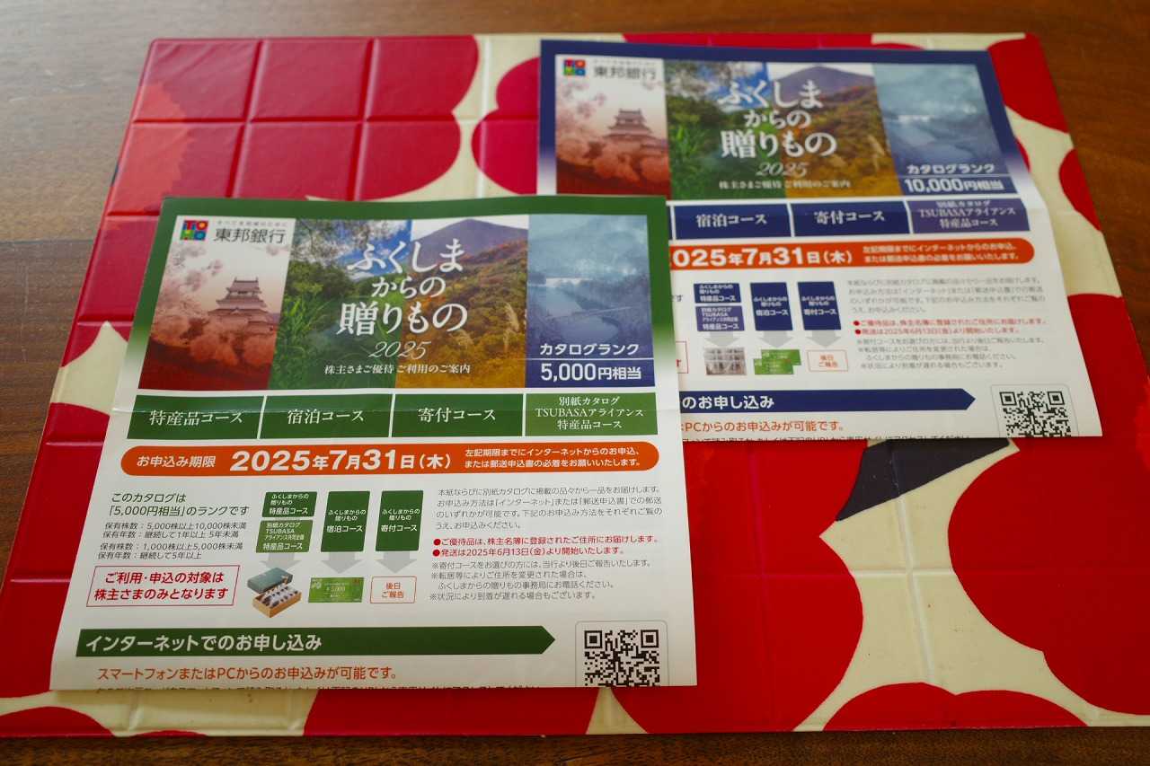 1000株保有で3000円相当、5000株保有で5000円相当、10000株保有で8000円相当などの福島県の特産品です。