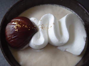 『栗のクリームケーキ』 下からミルクプリン スポンジ栗クリーム生クリーム もちろん、デカ栗1番最後に一口で コンビニスイーツ360円な~り~