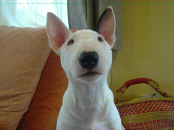 今日のワンコ..... 2ヶ月半『ベッキ~~』 めっずらしいよねぇ~~ブルテリア飼ってる人ってあまり聞かないでも このベッキ~むちゃくちゃかわいいよ 飼い主のKよちゃん、ワンコ欲しい~欲しい~とは言ってたけど(最初ブルだった)すごい速攻飼いで驚いた しかし...Kンタにそっくり