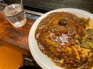 お好み焼+ごはん+カレー。ここでしかない(?)メニュー。