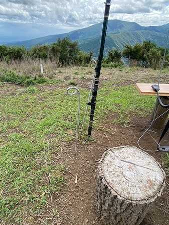いつもは、持って行った三脚にアンテナをとりつけているけど、