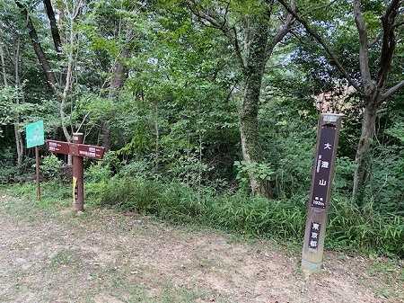 この標識のすぐ左側に上り道があるが、山頂に行くには、素直に左へ進む(少し下りになっているので不安になるけど。