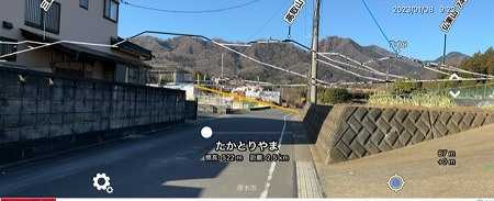 老人ホーム前で、AR山ナビで覗いてみると、真正面に山が現れている。