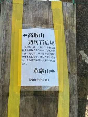 看板は、登山道側。発句石がここにある説明が書いてある。