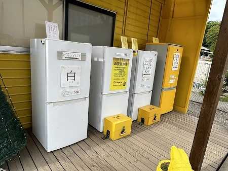 冷蔵庫(無人販売)の向きが、180度変わっている。