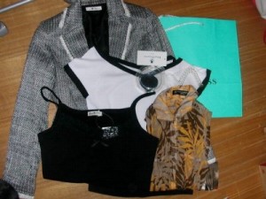 …が届いたのでレポート(`・ω´・ )ノダー!!中身はこんな感じ。■グレージャケット (28350エン)■白半そでニット (8295エン)■黒キャミ (4935エン)■ノースリシャツ (11550エン)計:53,130円どうでしょう~(*ゝ∀・*)あたし的にはね、めっちゃ満足でしたよぉ♪使いまわしやすいモノトーンばっかりだしとっても。゚+.(´・ω・`)+.゚。イィ!!他の皆さんの中身はどうだったのかな??
