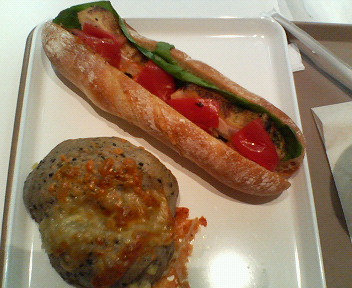 トロッケンゲビンデのレッスンの後、マーメイドカフェJR名古屋駅店に行きました。本格的なランチがしたかったのですが、もうだいぶ遅い時間だし、お腹もすいていたので簡単に(^^♪注文したのは、バジルチキンとトマトコンフィのサンド 440円トレコンチーズ 150円アボガドグレープフルーツジュース 480円全部で1,070円。全然簡単じゃなかった~。でも、全部おいしかったです。サンドはバジルが上品に効いていておいしかったし、トレコンチーズはようちゃんも好きそうなので、買って帰ればよかったな。アボガドグレープフルーツジュースは初めてだけど、爽やかでおいしかった~。これは今度家で作ってみます。 (デジカメを忘れたので携帯の写真です。)一人でランチなんて久しぶりでした。たまにはいいな~。