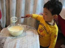 今日は久しぶりに家でまったり過ごすことにしました。まずはチーズケーキ作り。混ぜ混ぜ大好きようちゃんは、今日もうれしそうでした。 持ち上げて見てばかりだけど。でも混ぜるのはもういいから焼こうかなと言うと、「いやだ、いやだぁ。」と泣いていました。以前にオーブンレンジが途中で止まってしまうと書きましたが、まだ止まります。扉がしっかり閉まらないからということが判明したので、扉に今日はガムテープを貼りました(笑)今日はしっかり焼けて、大成功! ようちゃんもチーズケーキ好きのパパもおいしいと言ってくれました。今日のジュースは、人参(1本)とオレンジ(1個)、水(50CC)に少しメープルシロップを加えたものをミキサーにかけました(2人分の分量です。)ようちゃんは、ミキサーを見るのも大好き。「ミキサーやるよ。」と言うとうれしそうに飛んで来て、じーっと見ています。今日のはジュースというよりシャーベットみたいになりました。 先日買ったロッキンググラス/ノーマン コペンハーゲンゆらゆら~♪揺れる可愛いグラス!です。 ゆらゆら揺れてかわいいです。が、ようちゃん用には初めて。ずーっと回していて落としそうでこわい・・・のでもうようちゃん用にはしないと思います。 全部飲んで(食べて?)くれました。これは気軽に人参が摂れていいですね!それからスープパスタも全部食べました。最近食べなかったナスやジャガイモ、キャベツもぺろりと食べ、スープも飲み干しました。スープっていいですね~。 ~ ~ ~ ~ ~ ~ ~ ~ ~ ~ ~ しまじろうの今月号の絵本・DVDにてるてる坊主が出てきます。それを見て突然「てるてる坊主、作りたい。」と言うので一緒に作りました。「かわいいねぇ。」と喜んで、「首かけたい。」とずーっとかけていました。昼寝もてるてる坊主と一緒。 何だ?このポーズはてるてる坊主のことをネットで調べたら、本来のてるてる坊主は始めはのっぺらぼうで、晴れたら感謝の気持ちを込めて顔を描くのだそうです。そして川に流すとか。てるてる坊主も奥が深いんですね~。