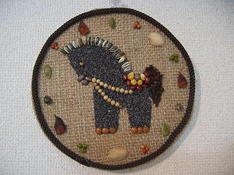 今日は「子馬のモザイク」を作りました。モザイクは初めて。丸い木に布を貼り、周りをぐるっと紐を貼り、あとは種、豆、香辛料をひたすらボンドで貼り付けていきます。食材など身近なものを使うから面白いです。馬のたてがみは、ひまわりの種 ひづめは、レンズ豆 鞍は、内側から数珠玉、とうもろこし、あずき しっぽは、クローブ 口は、すいかの種 手綱は、白こしょう 目は、フウセンカズラ(ハートの模様がかわいい)その他全体的にまぶしてあるのが、ブルーポピーシードです。周りは好きなものを貼ってもいいよと言われたので色んな種類を使いました。こういう細かい作業は好きなので楽しかったです♪なかなかかわいくできたかな? これは新居の階段に飾ろうかな~。もう今の家は飾る場所がなくなりつつあり・・・色んな作品が所狭しと並べられています。トロッケンゲビンデのレッスンに通い始めてちょうど半年。 (これまでの作品はこちら)今日は初めて宿題をもらって帰ってきました。ワイヤリング頑張りまーす。先生に見せてもらった本、すごくわかりやすくて名前を調べるのにちょうどいいので買おうと思います。写真もきれいで、見ているだけでも楽しいです。これからの季節、ますます木の実拾いが楽しくなりそうです。 探して楽しむドングリと松ぼっくり今日はレッスンの後、先生とhaminさんと一緒にランチへ行きました。ずっと行きたかった空色まが玉(明日また日記に書きますね。)そして土砂降りの中メルヘンハウスまで歩いたのに定休日でした。残念。。