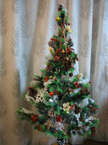 引っ越したらツリーを買おうね、と言っていましたが、全然間に合わなかったので、今年はなし?と思っていたら、旧実家(現父の事務所)にありました~。私が小さい頃のクリスマスツリー。箱を開けてみると、懐かしい飾り。ツリーを飾らなくなったのは小学生くらいだから、もう10何年も見ていないのに、覚えているものですね。ようちゃんも「あ、サンタさんだぁ。あ、サンタさんのお家だねー。」と大喜びで飾っていました。最初はキラキラのものやライトも付けて・・・でしたが、やっぱり木の実を飾りたいなぁと思い、全部やり直し。木の実に金色スプレーをかけたり、白いアクリルガッシュで塗ったりしました。それから、赤いビーズ、真珠のビーズを付けたり、赤いリボンを付けたり。なかなかかわいくできました。でも、飾ってみるとなんか変。。。やっぱり、本物の木じゃないと木の実は似合わないことがわかりました(^^ゞしかも、これは25年も前のツリー。色が黄緑色で、夫も「年代ものって感じがするなぁ。」と言っていました。来年はもっと緑でふさふさっとしたツリーを買うぞー。写真を載せるのも恥ずかしい感じですが(笑) 使った木の実は、松かさ、アンバー、ツバキ、ナンキンハゼです。右下の、アンバーの茎に付いてるのは、童具館 6色3体ビーズです。 ようちゃんが遊んでいて思いつきました(^^)木の実の飾りは来年も使えるけど、来年はどんなツリーを買おうかな?お庭にもみの木を植える話もありますが、中庭は却下された(もっと枝が分かれたものがいいと・・)ので玄関側になりそうです。外のツリーはライトくらいですよね?木の実を飾ってもいいかなぁ(^^)