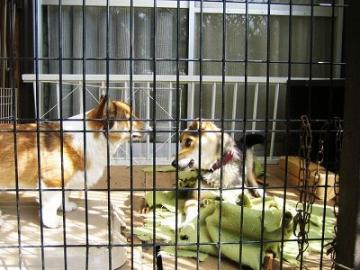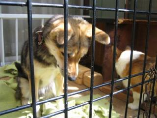 又始まりました。ドタバタ。アッイテテこの野郎咬みやがったな!でバトル始まりです。日常茶飯事?賑やかなこと。そんなこんなで罰で放り込まれたケージ。2頭で居るものですから全然平気反省しているのでしょうが?狭いから走り回ることも出来ないので、一見神妙にしているようです。借りてきた猫のように静かにしています。その内2頭ともお休みしていました。(笑)