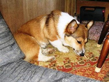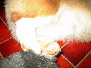 テーブルの下で気持よさそうに、安心して、鼾書きながら、昼寝している仔は暴れん坊主のリキです。(笑)先ほどはミックんに遊んで欲しくっていろいろ芸?をしてサエズッテ執拗に絡んでいたが、叱られてはかかって行き、立ち上がってカミカミしていましたが最終的にはミックんにもうれつに叱られ不貞腐れ寝です。私の足にタッチしています。きょうは良いお天気でした。と言うことはミックん今日も泳いできました。