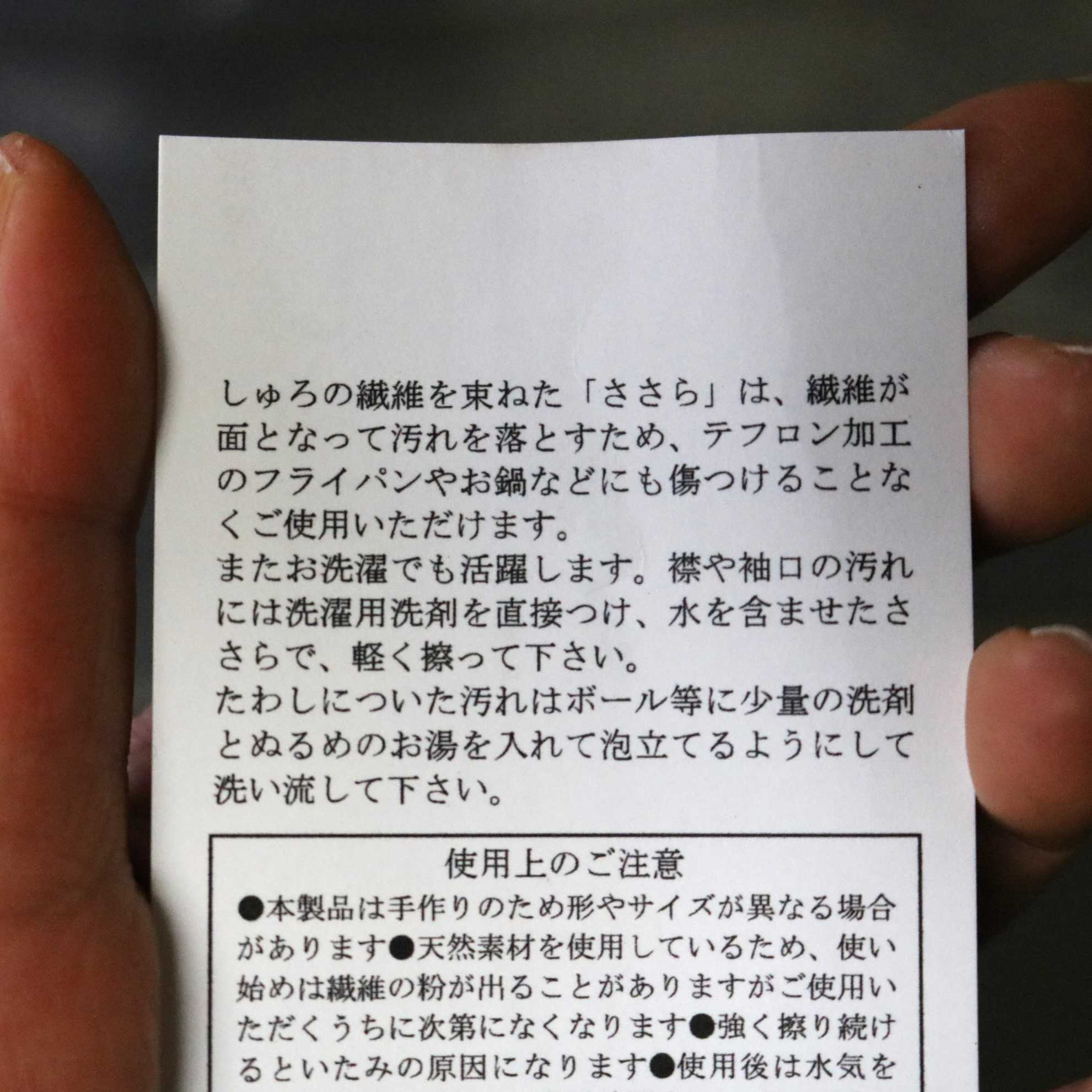 ささらと言えば竹製のものが主流だと思いますが、これはしゅろで出来ているので