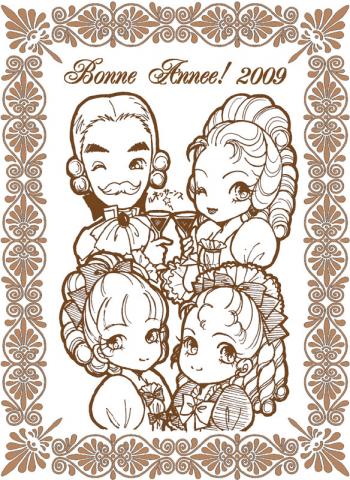 先回の記事と順序が逆な気もしますが・・今年の年賀状はこんなでした。 貴族なご挨拶やないかーい!チン! 線画ってところが時間のなさを物語っていますね(T_T) 元来手の遅い私、こんなでもかなり時間がかかってしまいました・・。 直接色を塗るのは当然断念、PCでの着色すら諦めました(=ω=;) シャンパンなのにワインのように色を塗りつぶしてしまったのはご愛敬ってことで。