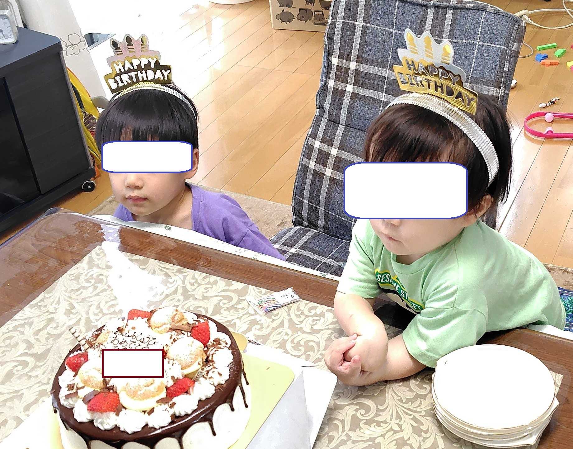 1泊2日で帰った孫のH。1日目は、夕方「うちに帰りたい」とか言ったりしましたが、夕飯を外食にしたので気が紛れたようで、夜はバタンキューしていました。翌朝は、朝から「(従兄弟の)Rちゃんは❓」と聞いていましたが、いざ娘一家が来ると人見知りが爆発。2階へ行ってしまい、次男が抱っこして降りてきましたが、顔を次男の肩に埋めて見えません。その後もふと見ると、キッチンで座っていたり・・・。まぁ、30分位経てば慣れるかな、と思いながら私と主人はケーキを取りに出かけました。ケーキを出しても、ハッピーバースデーをみんなで歌って(お祝いはHとK)、5歳になるHにろうそくを吹き消してもらっても、まだ顔が緊張していました。娘が『Happy Birthday』のカチューシャを持ってきて、HとKの頭につけましたが、おとなーしくつけていました(笑) Kもお口でふーふーしていたので、ろうそくが消えた後にふーっしてもらいました(^^;ケーキはこんな感じ あれ、ミニシュークリームが5個になってると言う私に、「サイズが見本より大きいからじゃない」と、冷静な娘の声。その冷静な娘に、ケーキを切り分けてもらいましたさ。その後は前日からじいじを標的にレスリングをしていたHにRも加わり、Kも参加しているつもりで、大乱闘。更に、いつの間にか2階へ移動して乱闘は続く・・・この頃から、子供同士の闘いごっこになったようです。私が2階へ行くと、主人と娘、次男は窓側の椅子に座って子供達を見ていました。 動画から切り取ったのでぼやけていますが、Rはもちろん、Hも小さなKを”なるべく”よけていました(笑)Kはとても嬉しそうにニコニコしながら参加しています。すっかり慣れたHは、もう帰るよ、と何度次男に言われても応じません汗びっしょりなので、上を着替えるように言いました。主人が車で駅まで送ったのですが、おんもへ出たいKがここで大泣き。先日預かった日のように泣くわ、暴れるわでしたが、今度はママがいるので、お任せ。お昼ごはんを用意している時に、疲れて横になりたくなった程だった所為か、娘も程なく帰りましたが、玄関まで送ったのに、この辺りよく覚えていません。でも、とても楽しい2日間でした🩷・・・ケーキ屋さん、ポイントカードがあるそうなのでもらいましたが、この日は他にお土産用のクッキーも買ったので、1万円以上買ったのに、当日のポイントは付けてくれませんでした。・・・そんなお店もあるんですね。←ドケチ主婦全開いつもポチっと応援ありがとうございますにほんブログ村にほんブログ村