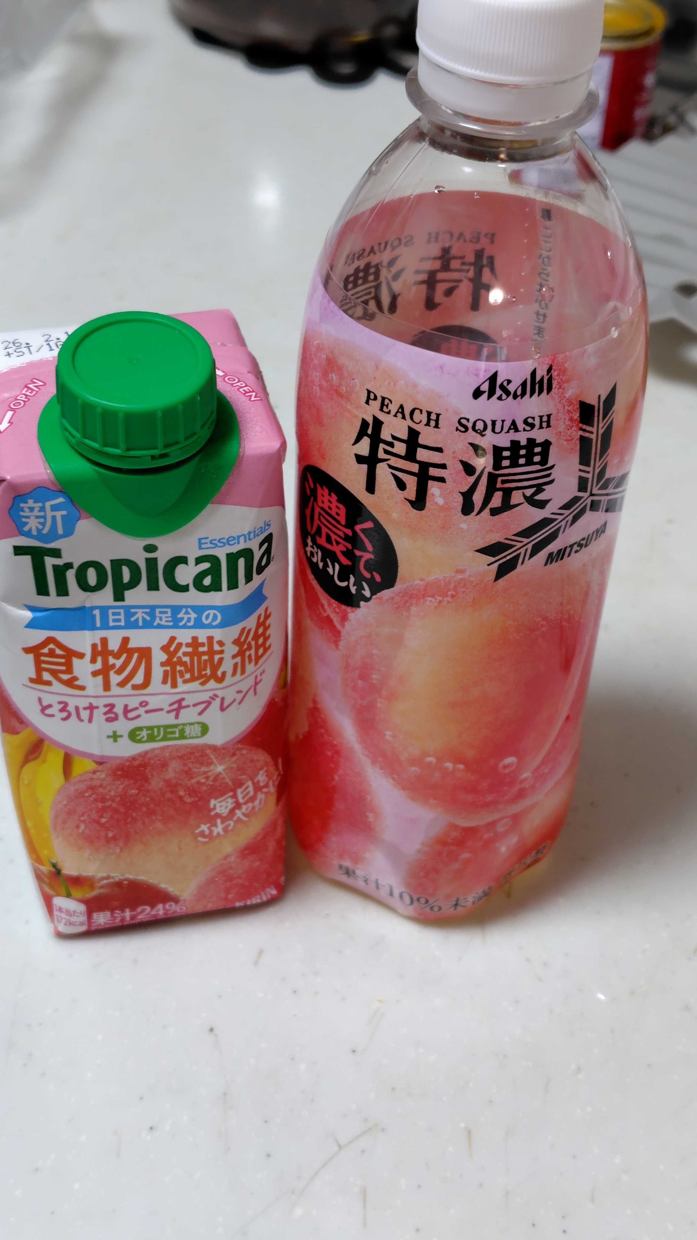 ・・・と言っても、材料が揃わなかったので、代用品で。こちらの動画を参考に作っています。ネクターといろはす桃を使うのに、今日行ったスーパーではどちらもない💦で、代用品がこちら 三ツ矢サイダーの桃味と、これは❓あ、トロピカーナのピーチブレンドとやら。桃だけではないんですよねー。でも、桃が23%入っているそうなので、いいですよね。今は、桃2個を剥いてサイダーにゼライスを合わせたものを注ぎ、冷蔵庫で一度目の冷却中です💞いつもポチっと応援ありがとうございます🍨にほんブログ村にほんブログ村