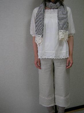 大好きなお店 aromoire さんでポチしたものの着画です全身アルモ~ うふふ~♪ すっかりハマってます着用品はこれらです【armoire*】リネン100%レース使いピンタッククロプドペチパンツ(70006)【armoire*】60/-綿ローンスカラップレース使い前後OKパフスリーブブラウス(50044)【armoire*】期間限定20%OFF+送料無料♪16/2天竺ボーダーバテンレース使い大判ストール(30009)ちなみに身長は161センチ・49キロで普段は7or9号を着ていますで、着画で着ているのはブラウスは38・リネンペチは36ですアルモさん、私はいつも購入前にサイズで迷うんです多分36でだいたいOKなんですが、丈が欲しいものは38を買ったり。。。ブラウスは36でもよかったかな?と思ってます。だいぶゆったり~です色がどうも上手に撮れなかったんですが、真白ではなく少しキナリがかってて可愛いの~ リネンペチは前の記事で悩んでますとかいいつつ、やっぱり一緒にポチしちゃってましたすっきり着たかったので36サイズをチョイス横から見てもすっきりなので大成功商品説明にあるとおり一枚でも着れちゃいますね~ イロチ買いしたいほど気に入っちゃいましたストールは最初画像で見た感じもっと薄いのかな?って思ってたんですところが手にしてみると適度な厚さと張りがあって、とってもいいお素材でしたなんというか。。。巻いた時にフワフワしちゃわないでしっとり~って感じですバテンレースがついててこのお値段は本当にお手頃お悩みの方、再生産はないそうなのでぜひぜひお勧めです今日からまた新しいお洋服がUPされてますね【petit armoire*】プティアルモワール*針抜きジャガードパフスリーブAラインふんわりカットソー(10003)【petit armoire*】プティアルモワール*テンセル混ボーダーくしゅくしゅロングタンクトップ(10004)プティシリーズはかなりお手頃価格ですね~すでに完売してるお色やサイズもありますが。。。私が次に欲しいのはこれなんです期間限定送料無料+20%オフ【armoire*】アルモワール*ジンバブエ裏毛エプロンチュニック(50032)色悩む~ 重ね着で着たら絶対可愛いしかも送料無料ですよ~
