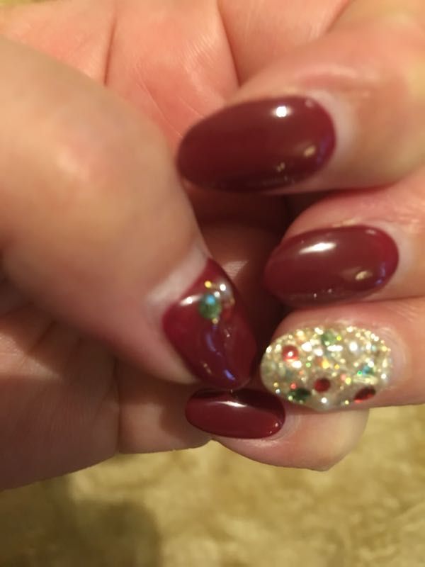 本当に今頃になりますが、クリスマスとお正月に向けたネイルです 今年は帰省せずに横浜で過ごすつもりだったので、このネイルのままという事 折角、艶やかなネイルにしたのに戻る頃には伸びてしまうので 綺麗な状態を見せれない事が残念でした。
