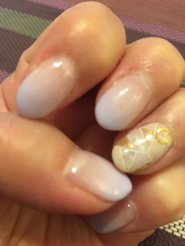 続けて3月のネイル載せる筈が又忘れる所でした 写真では わかりにくいですが薄紫に近い色です 最初は3月のデザインから選んでピンクにしていたのですが ネイリストさんのデザインが気になって見せて貰いました するとこれは4月用のデザインという事で、4月は来れないかもって事でやって貰いました 薬指の金の輪っかはデザインには無かったのですが、ネイリストさんがやっていたので私もして貰いました 薬指だけ 金色を乗せ シェルを乗せと派手になってます