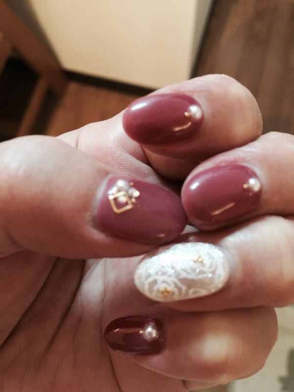 今回は、今月のお勧めデザインなので、少し安めで出来ました 元々の色は茶系で やった事無い色で躊躇して その隣にあったのが このワイン色でした 後、白の配置も左手の薬指でしたが、模様が綺麗で親指にしたらどうなるか見てみたくて 右手だけ親指にしてみました どちらも良い感じだと思います 今回はオフもやって貰いました だって、せっかく綺麗に伸びてるのに自分で取ると折れたり割れたりするので たまにはいいかと思って、すると 今度の予約をするとオフが安くなると言うので予約しました いつ来れるかわからないからと断ってたんですが、変更出来ると言うのでそれなら良いかと^o^ もっと早くすれば良かったよー