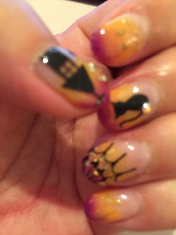 今まで、ここまで行事物のネイルアートはした事ありませんでした ただ、色目が気に入りアート無しにしようか、、、と思ったものの 何時もやってくれるネイリストさんのデザインとわかり 思案してましたが、アートが無いのも又惜しくて結局そのままやって貰いました だって、黒もちゃんと大事な組み合わせだもんね 黄色とオレンジを混ぜてカボチャ色ってわざわざ作ってあります そして紫も効いてるよね! アップが遅くてとうとうハロウィン当日になっちゃった
