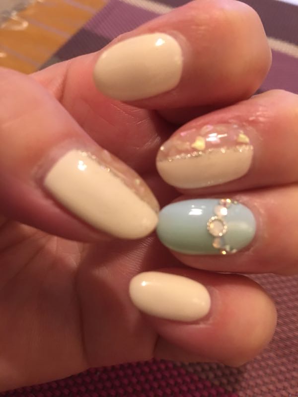ここの所、約1ヶ月毎にネイルして貰いに来てるので 爪も育ってくれてやっと割れた爪も無くなりました 今月のネイル 一番人気なのは、一番高額のだったので、確かに良かったけどやめました 値段でいけば、その次のもの この白の様なバタークリームの様な色に惹かれて選んじゃいました この白は新色だそうです 緑もパステル調で今の時期に良いかな〜なんてね