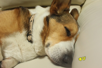 今日は、画像処理ソフトが固まってしまいアップ出来ないかと思いました。せっかく、眠気に襲われずに元気なのに・・・( ̄▽ ̄;) さて、今夜のとんかつくん・・ 思いっきりソファに顔を押し付けて爆睡中。 最近は、ぴいちゃんと散歩に行く時間が増えてウキウキのとんかつくん♪あちこちの臭気選別に忙しくてなかなか散歩が進まないので、ぴいちゃん泣かせらしいですが・・(-_-) この後起きたら、下になってた顔がペチャンコになってました^^; ではまた~~ ランキング参加中♪1日1回ポチッと応援よろしくお願いします<(_ _)>