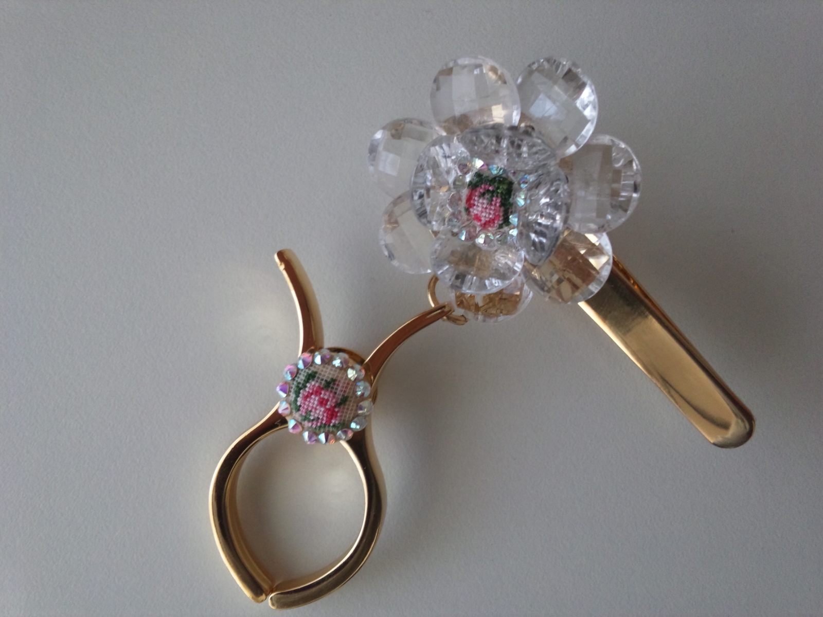 ジャーン。出来ましたぁ。出来ましたのよ、作品の数々。では。順番に。 まず、これが。グローブクリップです。バッグに付ける部分も、クリップになっているので。例えば。コートのポケットに挟んだり。いろいろ、使えそうですよね。そして。 これは。キーストラップ。花の部分がリールになっていて。鍵を固定したまま。グイーンと伸ばして使えるのですよ。そして、そして。 これは。ブローチです。グローブクリップと。最後のブローチ以外は。プレゼント用。 聖なる夜に たくさんの幸せが 舞い降りてきますように よいクリスマスを