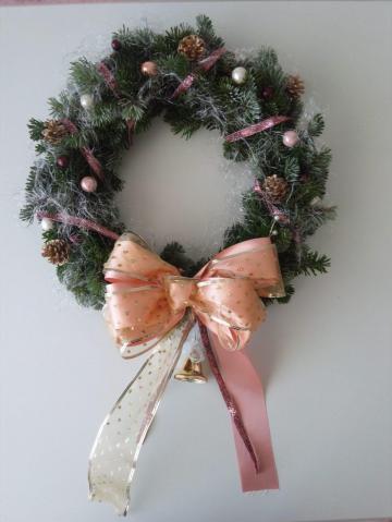先日のこと。友人からメールが。『リースを作りません?』ほう。リースですかぁ。そういえば。そろそろ、クリスマスだし。ということで。作ってきましたよ。クリスマスのリース。 やっぱり、ピンクよねぇ。グリーンの部分は。本物のモミの木なんですよ。飾りはぜーんぶ。友人が揃えてくれて。というか。お花を教えてる友人の家には。山のように飾りがあって。好きな物を。好きなだけ選べて。もう。楽しくて、楽しくて。で。山のようにあるリボンの中から。選んだのは、やっぱりピンク。ピンク、ピンク、ピンク。迷うことなく。全部ピンク。なので。あっという間に。出来上がってしまった。本当は。玄関の外側のドアに飾ろうと思っていたのですが。予想以上に大きくて。今。お部屋に飾ってあるのでした。