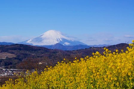 最低気温、氷点下だったってさ寒いわねぇ~~でも、空は青いやっぱりお出かけよね二宮町 吾妻山公園の菜の花が綺麗なんだって「吾妻山」って言うくらいだから、登るんだろうなとは覚悟していたが臨時駐車場から、公園入り口までが約20分それから、頂上までが、更に20分強菜の花が咲いているエリアは、犬は入れませんだからバギーに乗せるしかない40分、ミルトレのリードを片手に、バギーを片手で押しながら、歩いたぁ寒いどころか、汗かいたわふくらはぎ、パンパンだし目的地に到着しただけで、もう疲れた~~~でも、この景色を見たら、疲れが吹っ飛んだ菜の花畑は、決して広いわけではないけれど・・・・富士山が綺麗海も見えるがここで大問題が発生カメラのスイッチをいれたら「NO CARD」って出たぎゃぁ~~電池はフル充電して、予備電池まで持ってきたのにSDカード、昨日抜いたんだった・・・・どうするどうしよう今登ってきた40分の道のりを下って、コンビニでSDカードを調達するかで、また40分かけて、登ってくる頭の中で、グルグルあ~~ 今日に限って、コンデジも持っていない「目に焼き付けて帰るか」って諦めた時話しかけてくれた女性がいた・・・・「ワンちゃんの写真、撮るんですか」って。「SDカード入れ忘れてきちゃって・・・・」と話すとその女性コンデジをバックから出して「このSDカード使えますか」と差し出してくれた。お父さんの付き添いで菜の花を見に来たけど、写真はほとんど撮らないのでよかったら使って下さい後日、郵送してくれればいいですから・・・・・と。もう、女神様に見えたわお言葉に甘えて、SDカードを貸して頂き、撮影開始今日も、たくさんのカメラマン&カメラウーマンさん達に写して頂きました。中には、「あくびさせて」とか「舌出さないかしら」なんて無理なこと言う、おばちゃんカメラマンもいたけどそうそう、今日は乳母もモデルになりました今日は、シェルティの刺繍入りでミルトレの名前入りの上着を着ていたのでその背中を写したいとだから、モデルといっても、顔は写されていないからねその背中だけを写したいわけではなく菜の花をバックに、ミルキーとトレジャーを撮影中の乳母を写したいらしいってことなので乳母は勝手にミルトレを撮影その背後から、写している人がいた・・・・ってわけだけどねだんだん、雲がかかってきてしまった。やっぱり、富士山は朝早い方がいいらしい・・・・人も次第に増え始め、写真を撮りにくくなってきたのでそろそろ退散しようかなすると以前、相模原公園であやめを撮りに行ったときに写真を撮って下さった方に声をかけられた「この子達に、見覚えがあって・・・・」って。ミルトレの顔は覚えていても、乳母の顔は記憶にないらしい 優しい女神様のおかげで、いっぱい写真が撮れましたホントに、ありがとうございました さて・・・・・午後からは、箱根に向かいます つづく