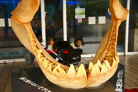 ワンコと一緒に行ける水族館「油壺マリンパーク」去年も行ったけど・・・今年はシェルメンバーで開館と同時に入ったのは、みかち家とミルトレ家早速、撮影開始昨日、自分から 「水族館に行きたい」と言ったミルキー嫌がらずに歩くし、笑顔も出る連れてきて、よかった~僕・・・マユダテペンギンと同じ位の大きさみたい byトレジャードーナツの海 丸い水槽の前でこのころ、みかん家&ルート家到着(約1時間強位、遅れてね)水族館での撮影は・・・・難しいね~イルカショーは、ワンズはNGだけど、イルカプールはいいんだよ窓から、ワンコが覗くと、イルカが近寄ってくるよ と係員のおばさま、いえいえちょっと昔のお姉さまが教えてくれたのでみんなでGOあら、背中ツンツンしないで byミルキーホントに、おばさまが教えてくれた通り窓枠に、ワンコを座らせると、寄ってくる寄ってくるイルカとツーショットの写真が、いっぱい撮れた集合写真シェルティ6+自由犬のコーちゃんそういえば、一昨日天気予報を見た時は、降水確率60%でマークがあって昨夜は、マークだったのに今日の天気はそれも・・・・暑い雨は嫌だけど、こんなに暑くなくてもいいのに・・・・・晴れオカマのトレジャー、頑張ったね 油壺マリンパークを後にして、遅めのランチBLUE MOON行きたいドッグカフェが、いっぱい見つかったんだけどこの後、もうひとつ行きたいところがあったので、なるべく近めで良さそうなココを選んだタコライスレタスじゃなくて・・・・大根だったけど、美味しかったよ道路を挟んで、海心地よい風が吹き込んできて、なかなかがこのあと、乳母体調不良になり、気持ち悪し、脂汗でるし乳母も貧血 ミルキーのがうつったまあ、乳母にうつってミルキーが治るならそれは、それでよしなんだけどお店のソファーに横にならせてもらって落ち着くまで、みんなを待たせてしまったわごめんなさいで、ランチの後、ホントは、船「にじいろさかな号」に乗るはずだったけど船は出ているけど、「うねり」があって、本来の目的地までいけないってことで中止またリベンジしに行こうね~~ ご心配かけてすみませんでした